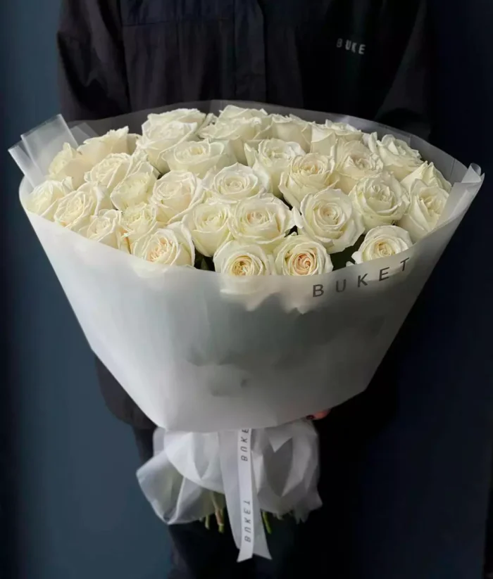 «Белые Грезы» — моно букет из 31 белой розы. Идеальный подарок для особых моментов. Цветы в Москве с доставкой.