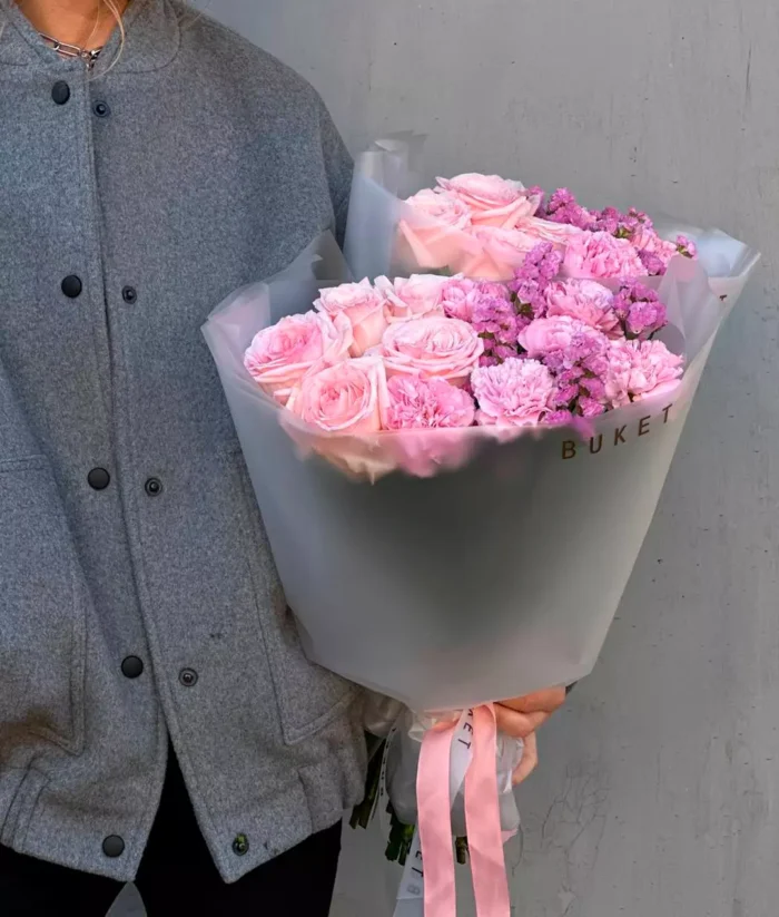 Букет «Волшебство Цветов»: розы и диантусы – идеальное сочетание для особых моментов. Закажите цветы в Москве и радуйте любимых!