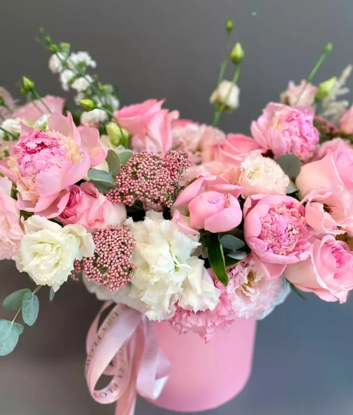 Состав: Озотамнус Эустома Маттиола Роза Эквадор Эвкалипт Перья.